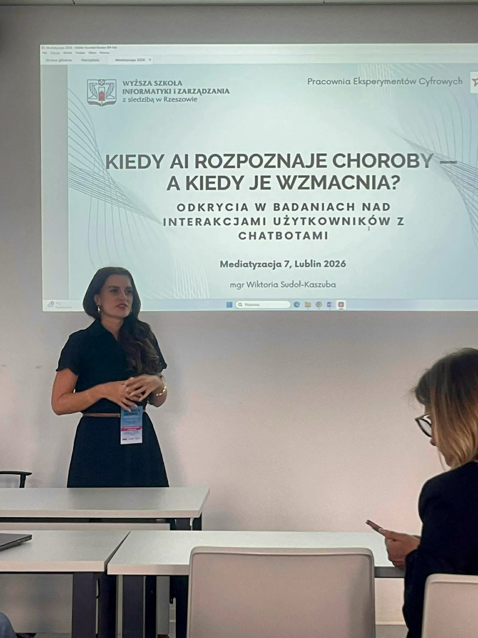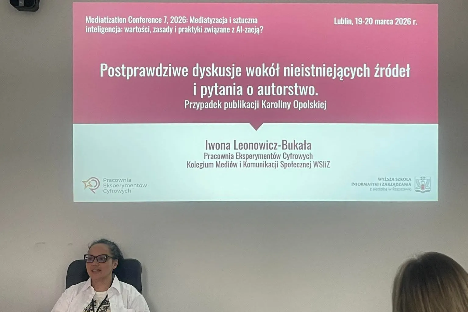 The Digital Experiments Lab team, representing the University of Information Technology and Management in Rzeszow, actively participated in the international Mediatization Conference 7, held on March 19–20, 2026 in Lublin. The event brought together researchers and practitioners to explore the evolving relationship between mediatization processes and artificial intelligence, framed within the concept of “AI-zation.”
